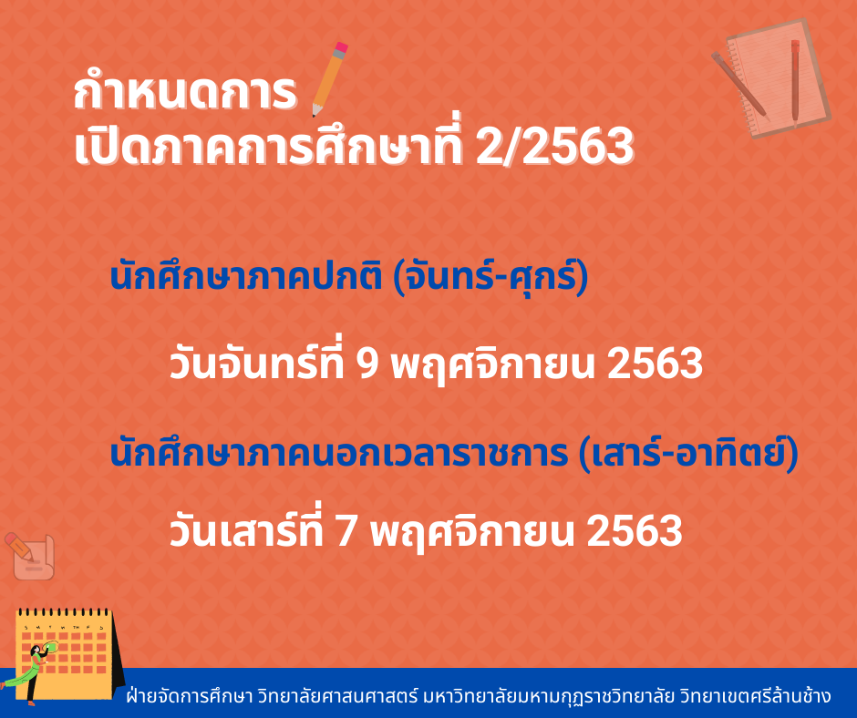 กำหนดการเปิดภาคการศึกษาที่ 2/2563