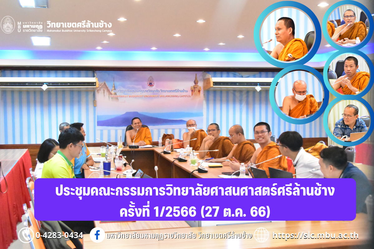 การประชุมคณะกรรมการวิทยาลัยศาสนศาสตร์ศรีล้านช้าง ครั้งที่ 1/2566 (27 ต.ค. 66) วันศุกร์ที่ 27 ตุลาคม 2566 เวลา 13.00 น. พระมหาวิเชียร ธมฺมวชิโร,ดร. รองอธิการบดี ประธานที่ประชุม พระครูปลัดจักรพล สิริธโร,ดร. ผู้อำนวยการวิทยาลัยศาสนศาสตร์ เลขานุการที่ประชุม คณะกรรมการวิทยาลัยศาสนศาสตร์ เข้าร่วมประชุมครั้งที่ 1/2566 เพื่อปรึกษาหารือและวางแผนการดำเนินการจัดการศึกษาระดับบัณฑิตศึกษา ระดับปริญญาตรี การจัดระบบอาจารย์บรรยาย ประจำภาคการศึกษาที่ 2/2566 ณ ห้องประชุมกว้าง รอบคอบ วิทยาเขตศรีล้านช้าง ภาพ/ข่าว : ฝ่ายประชาสัมพันธ์