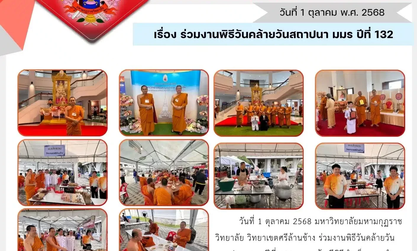 วันที่ 1 ตุลาคม 2568 มหาวิทยาลัยมหามกุฏราชวิทยาลัย วิทยาเขตศรีล้านช้าง ร่วมงานพิธีวันคล้ายวันสถาปนา มมร ปีที่ 132 ภาคเช้า มีพิธีบำเพ็ญกุศลทำบุญอุทิศแด่บูรพาจารย์ และการมอบคำสั่งแต่งตั้งผู้บริหาร ที่ได้ดำรงตำแหน่งทางวิชาการ และมอบทุนการศึกษาแด่พระนักศึกษา โดยเจ้าประคุณสมเด็จพระมหาวีรวงศ์ องค์อุปนายกสภามหาวิทยาลัย ภาคบ่าย เจ้าพระคุณสมเด็จพระอริยวงศาคตญาณ สมเด็จพระสังฆราชสกลมหาสังฆปริณายก เสด็จเป็นองค์ประธานในพิธี ทรงประทานรางวัลแด่ผู้มีอุปการคุณแก่มหาวิทยาลัย รางวัล คุณสัมปันโน และรางวัลผู้บริหารและบุคลากรดีเด่น รางวัลวิชฺชาจรณสัมปันโนและทรงมอบทุนการศึกษาแก่พระนักศึกษา ในโครงการ ประจำปี 2568 ในครั้งนี้วิทยาเขตศรีล้านช้างเข้าร่วมพิธีโดยรองอธิการบดี ผู้ช่วยอธิการบดี มีตัวแทนบุคลากรและนักศึกษาไปจัดทำโรงทานบริการในงาน