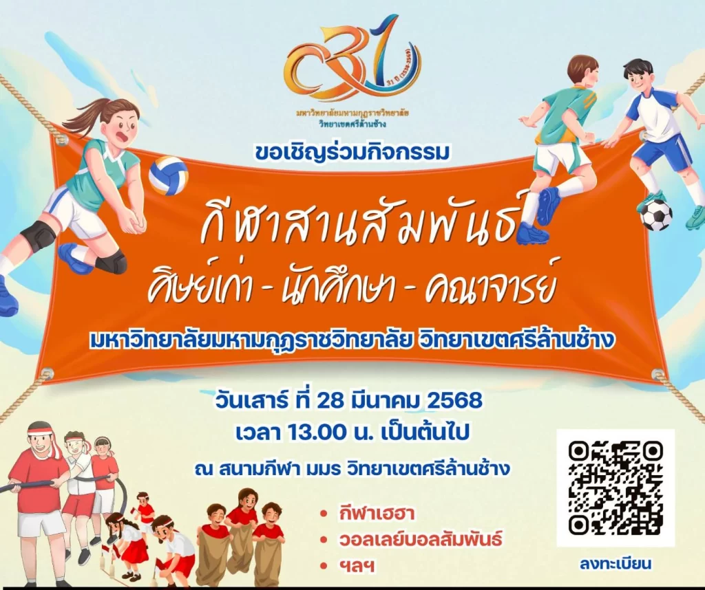 ร่วมกิจกรรมกีฬาสานสัมพันธ์ ศิษย์เก่า -นักศึกษา- บุคลากรคณาจารย์ ประชาชนทั่วไป