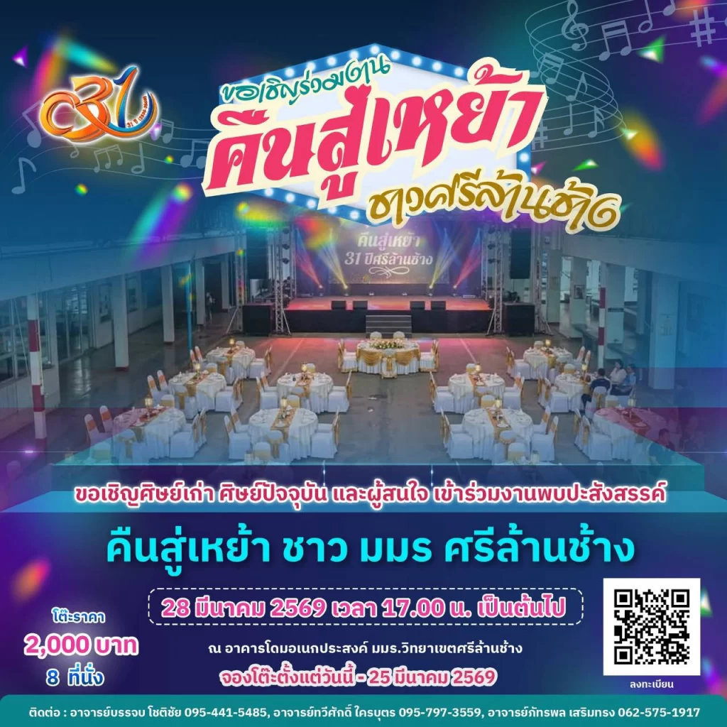 ⏰⏰ติดต่อ จองโต๊ะจีน ๆ 2,000 บาท (จองถึงวันที่ 20 มีนาคม 2569) /ผศ.เตชทัต ปีกสังขาเนย์ สอบถาม 083-341-5697