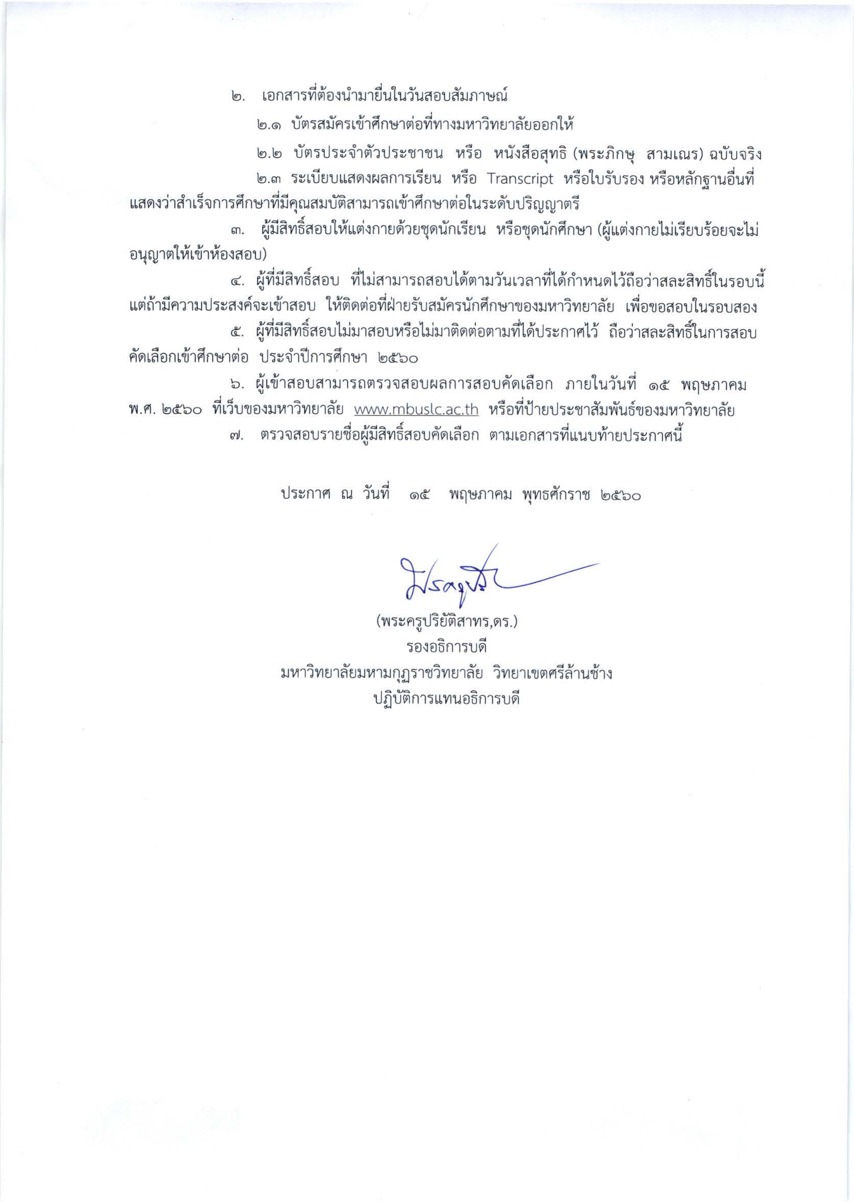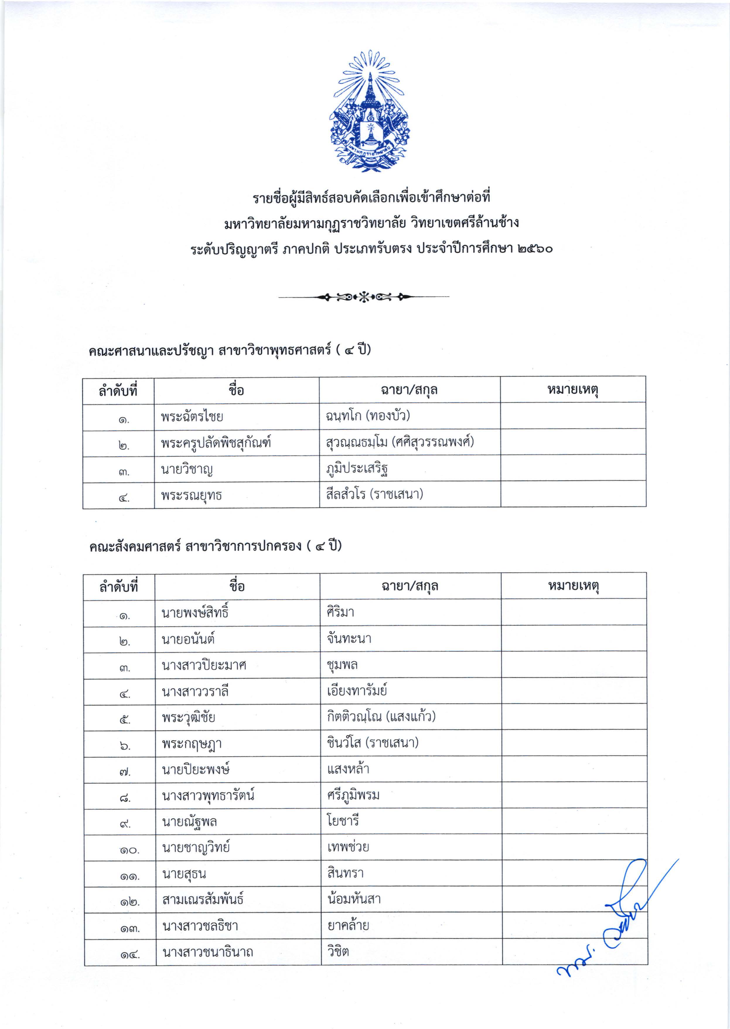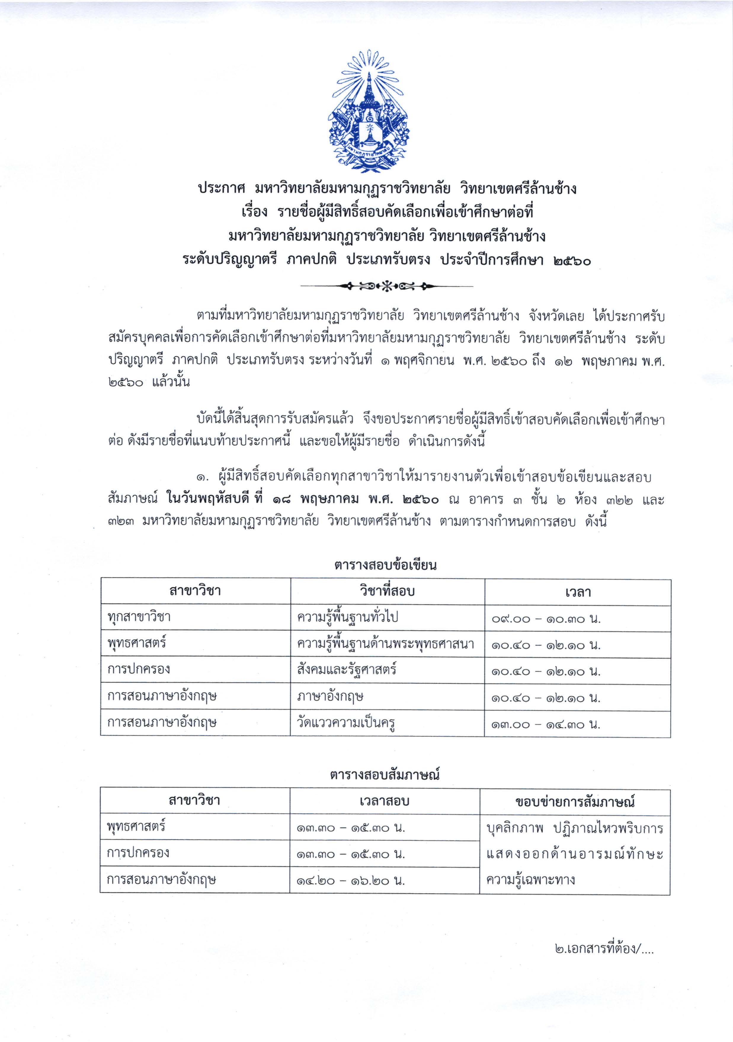 ประกาศ รายชื่อผู้มีสิทธิ์สอบคัดเลือกเพื่อเข้าศึกษาต่อ ระดับปริญญาตรี ภาคปกติ ประเภทรับตรง รอบสอง ปีการศึกษา 2560
