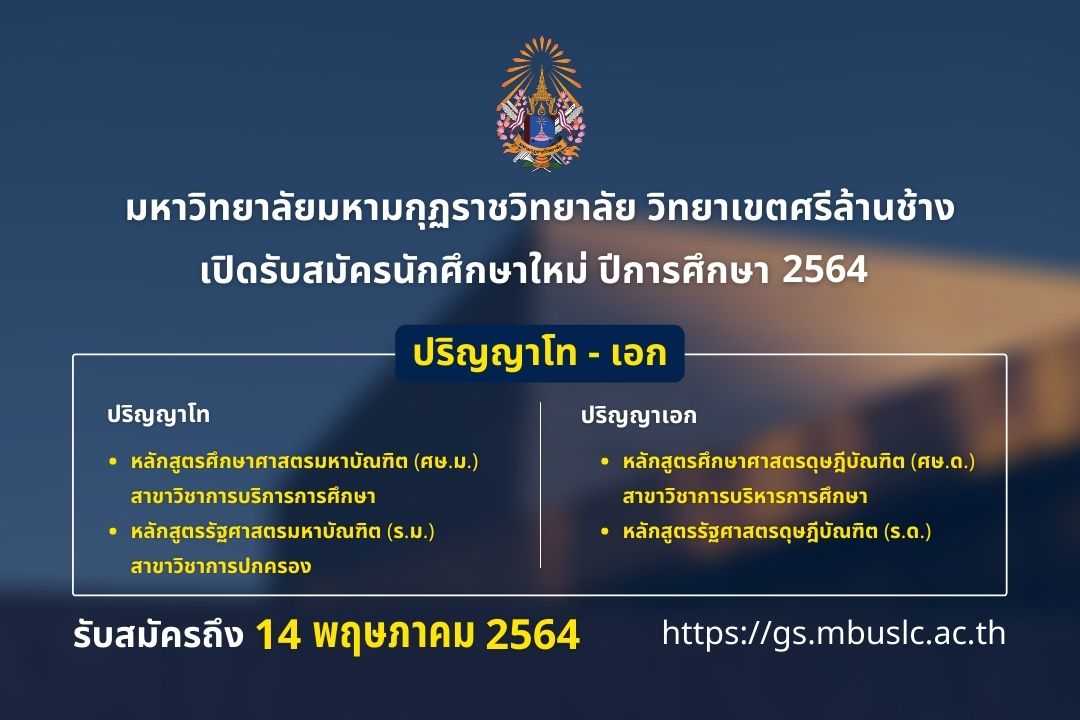 ประกาศรับสมัครบุคคลเข้าศึกษาต่อในระดับบัณฑิตศึกษา ภาคการศึกษาที่ 1 ประจำปีการศึกษา 2564