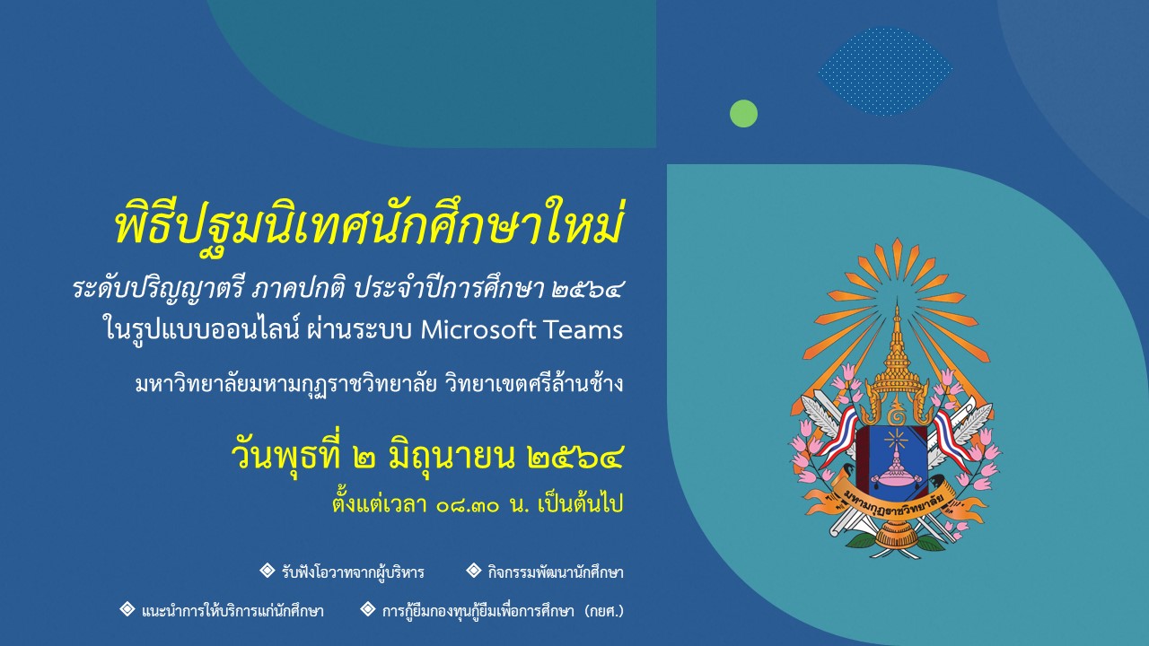 กำหนดการปฐมนิเทศนักศึกษาใหม่ ประจำปีการศึกษา ๒๕๖๔
