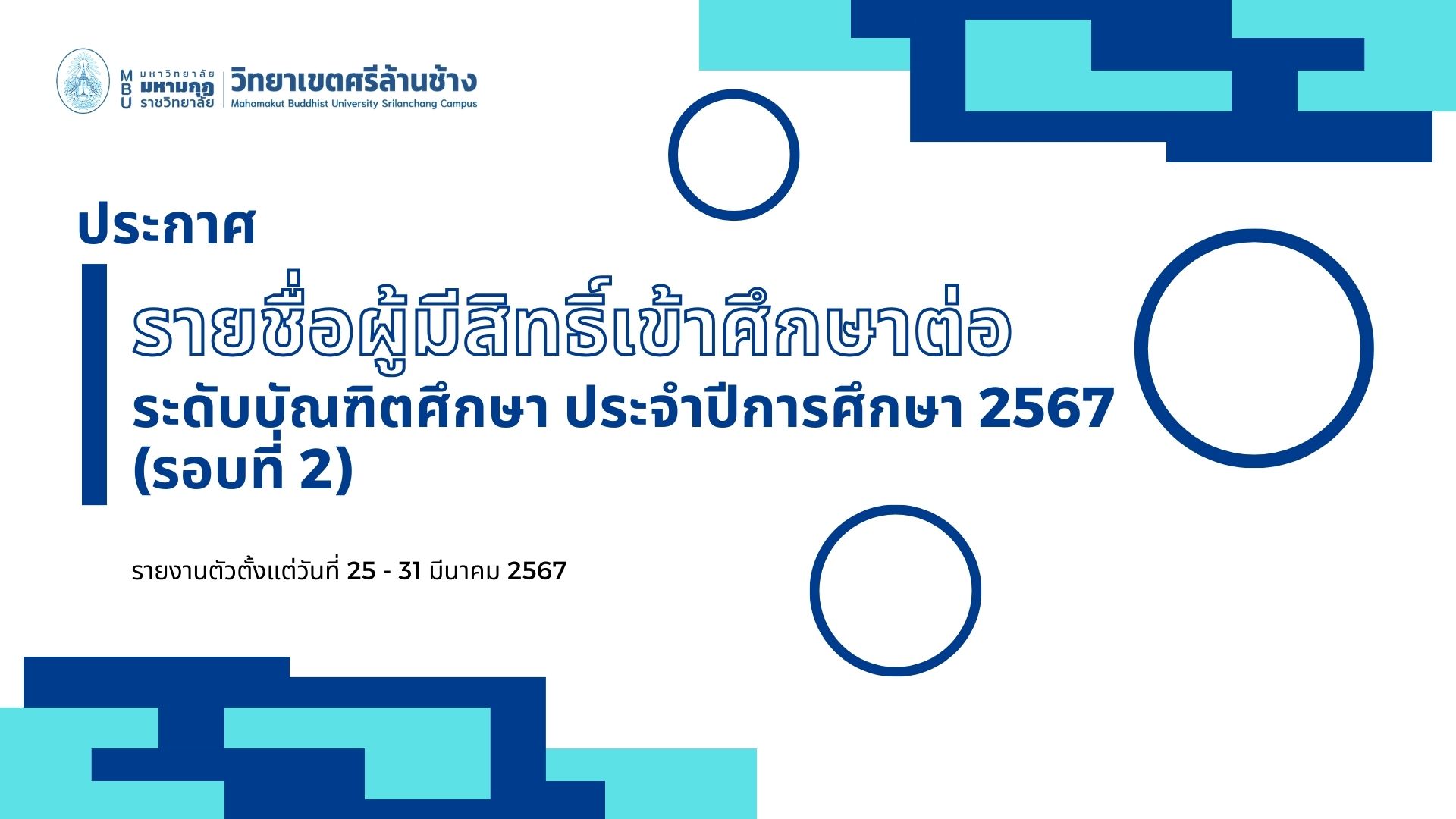ประกาศ รายชื่อผู้มีสิทธิ์เข้าศึกษาต่อระดับบัณฑิตศึกษา ประจำปีการศึกษา 2567 (รอบที่ 2)
