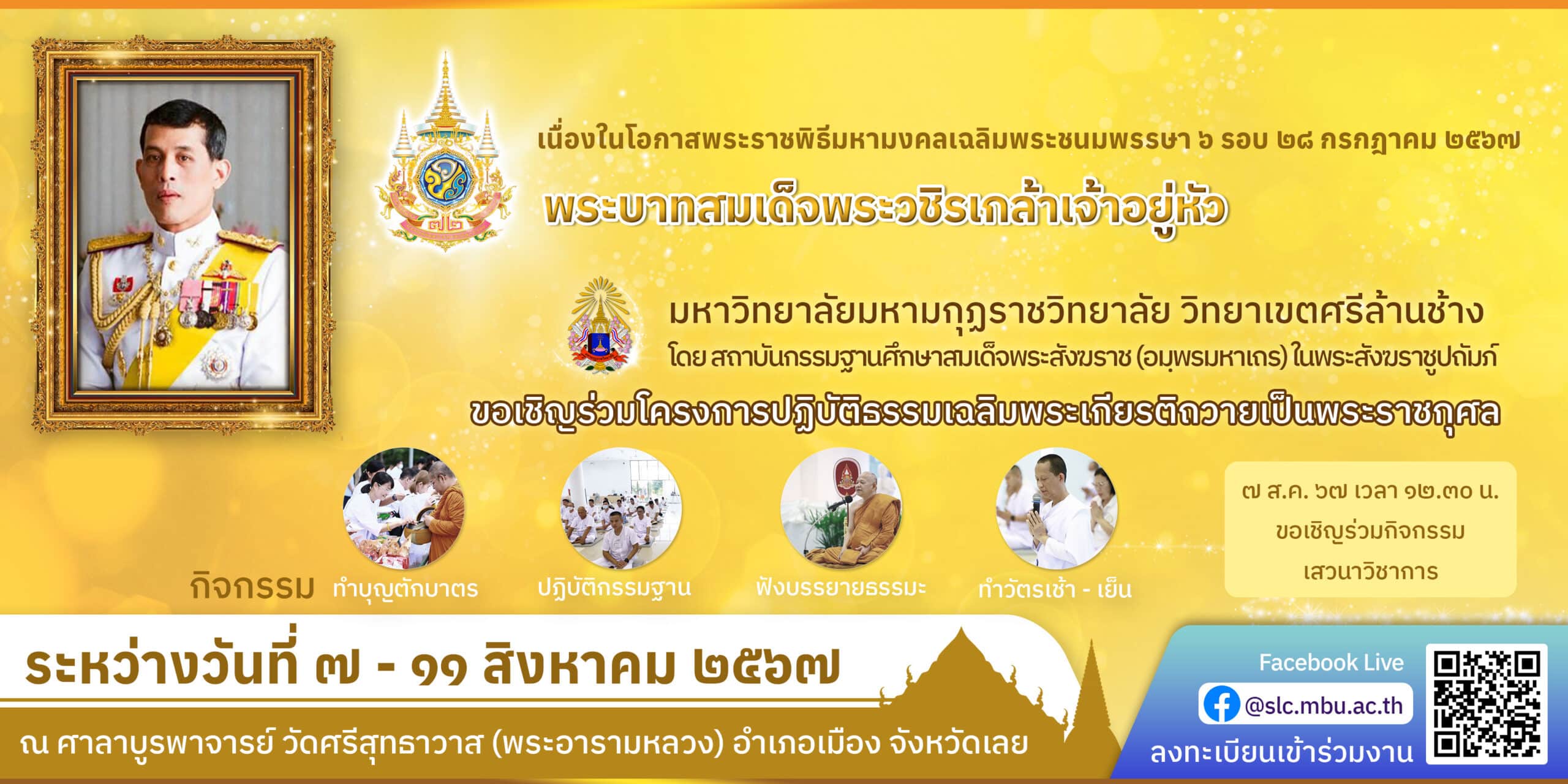 กำหนดการ โครงการปฏิบัติธรรมเฉลิมพระเกียรติถวายเป็นพระราชกุศล