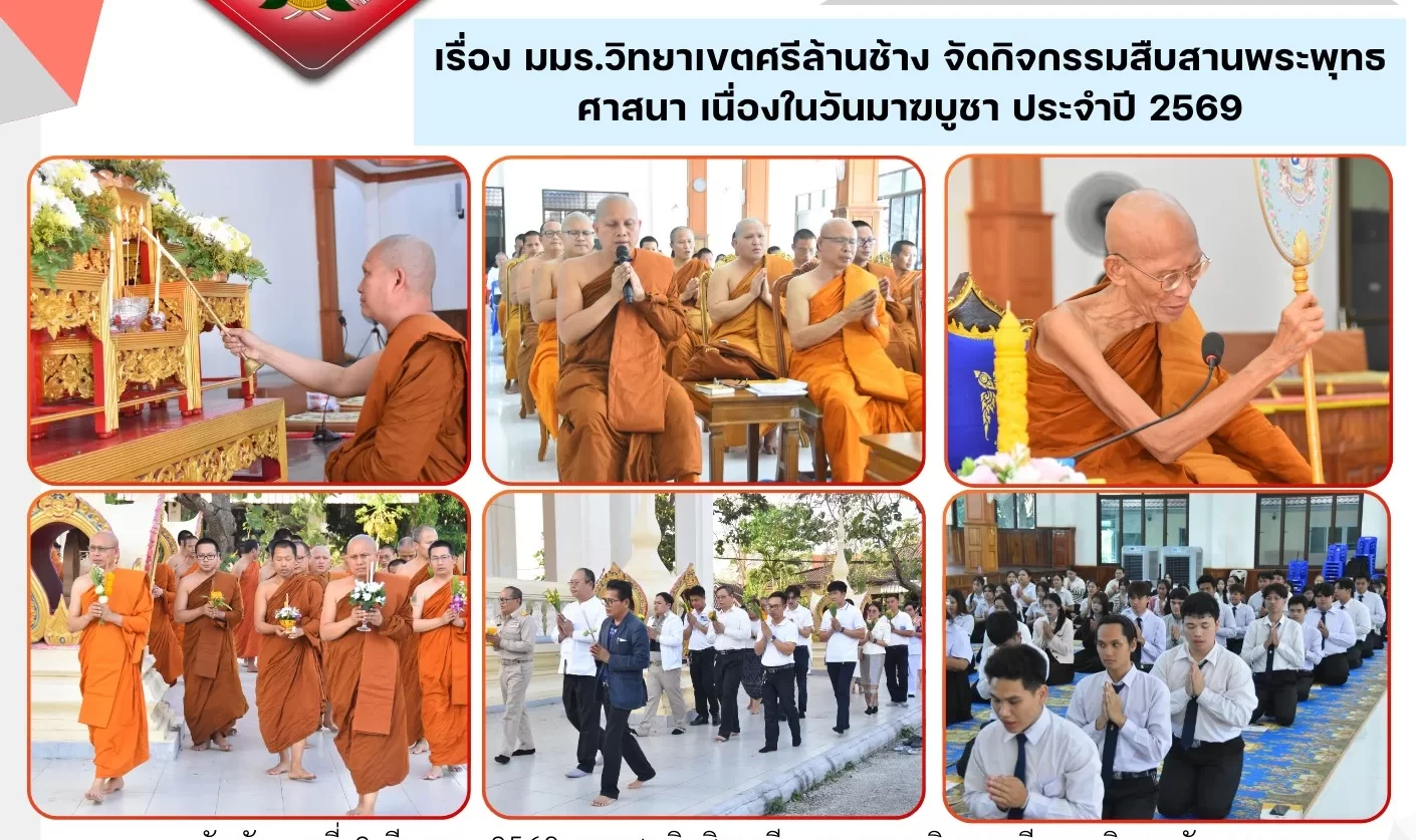 วันอังคารที่ 2 มีนาคม 2569 พระสุทธิวชิรเมธี, ดร. รองอธิการบดี มหาวิทยาลัยมหามกุฏราชวิทยาลัย วิทยาเขตศรีล้านช้าง นำคณะผู้บริหาร คณาจารย์ เจ้าหน้าที่ และนักศึกษา ร่วมจัดกิจกรรมเนื่องในวันมาฆบูชา ณ ศาลาบูรพาจารย์ วัดศรีสุทธาวาส พระอารามหลวง อำเภอเมือง จังหวัดเลย โดยมีการประกอบพิธีเจริญพระพุทธมนต์ ฟังพระธรรมเทศนา และเวียนเทียน เพื่อส่งเสริมคุณธรรม จริยธรรม และสืบสานประเพณีอันดีงามทางพระพุทธศาสนา การจัดกิจกรรมในครั้งนี้ได้รับความร่วมมือจากผู้บริหาร คณาจารย์ เจ้าหน้าที่ และนักศึกษาเข้าร่วมพิธีดังกล่าว ในการนี้ มหาวิทยาลัยฯ ได้รับความเมตตาอย่างสูงจาก พระเดชพระคุณพระราชวชิรสุธี แสดงพระธรรมเทศนาและกล่าวให้โอวาท เพื่อเป็นแนวทางในการดำเนินชีวิตด้วยหลักธรรมคำสอน อันเป็นการปลูกฝังจิตสำนึกที่ดีงามแก่ผู้เข้าร่วมกิจกรรม