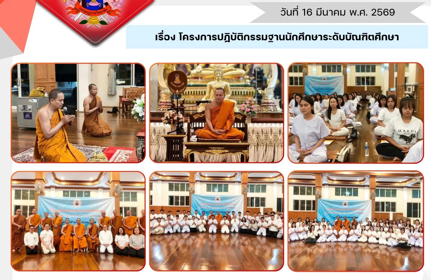 ระหว่างวันที่ 13 – 15 มีนาคม 2569 มหาวิทยาลัยมหามกุฏราชวิทยาลัย วิทยาเขตศรีล้านช้าง ได้จัดกิจกรรมอบรมกรรมฐานสำหรับนักศึกษาระดับบัณฑิตศึกษา จำนวน 5 หลักสูตร ประกอบด้วย หลักสูตรศิลปศาสตรมหาบัณฑิต สาขาวิชาพุทธศาสน์ศึกษา, หลักสูตรรัฐศาสตรมหาบัณฑิต, หลักสูตรศึกษาศาสตรมหาบัณฑิต สาขาวิชาการบริหารการศึกษา, หลักสูตรศึกษาศาสตรดุษฎีบัณฑิต สาขาวิชาการบริหารการศึกษา, หลักสูตรรัฐศาสตรดุษฎีบัณฑิต โดยได้รับความเมตตาจาก พระสุทธิวชิรเมธี, ดร. รองอธิการบดี กล่าวให้โอวาทแก่ผู้เข้าอบรม โดยมี พระครูปลัดจักรพล สิริธโร, ดร. ผอ.วิทยาลัยศาสนศาสตร์ และคณาจารย์ระดับบัณฑิตศึกษาเข้าร่วมปฏิบัติธรรม ณ วัดป่าม่วงไข่ อ.ภูเรือ จ.เลย