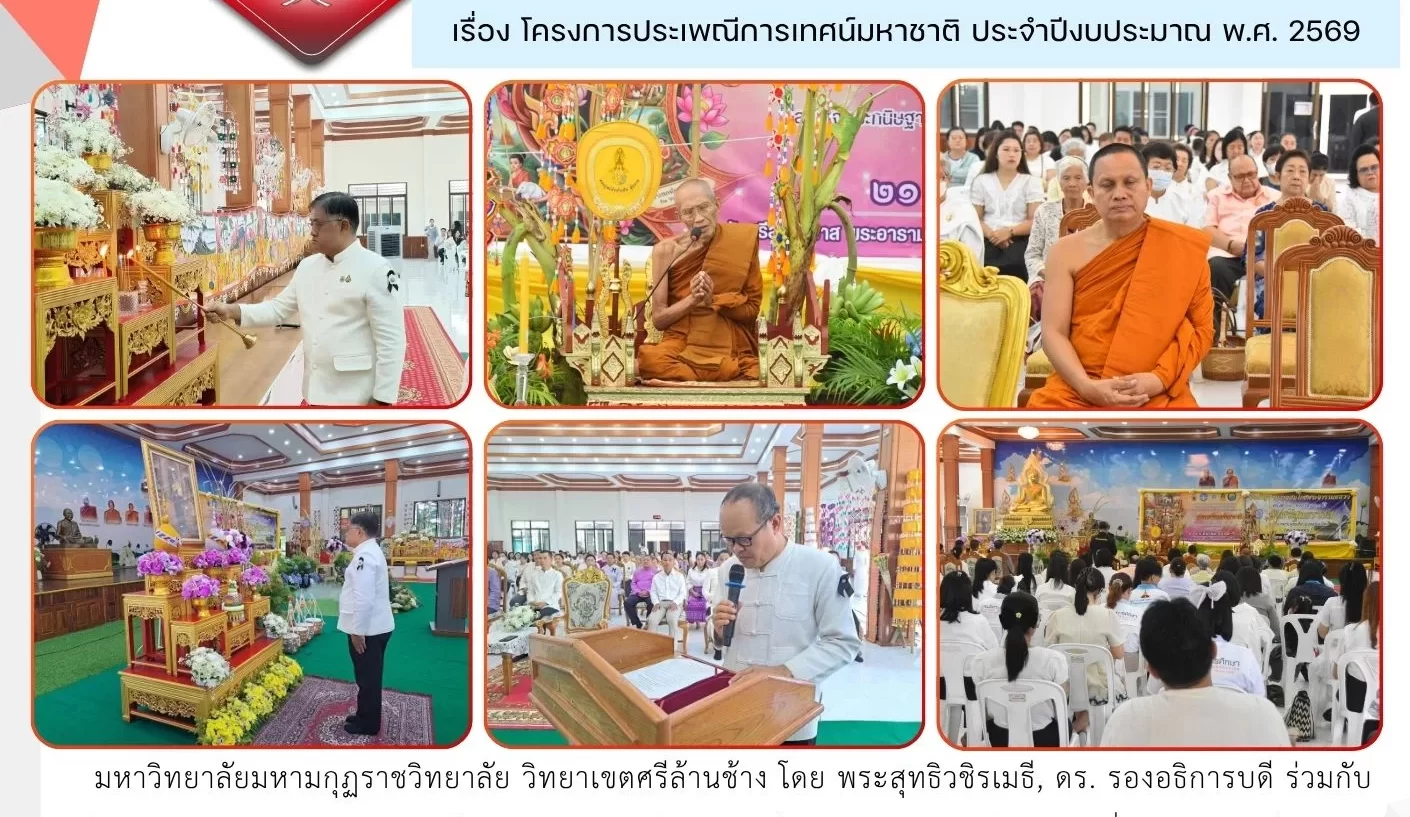 มหาวิทยาลัยมหามกุฏราชวิทยาลัย วิทยาเขตศรีล้านช้าง โดย พระสุทธิวชิรเมธี, ดร. รองอธิการบดี ร่วมกับวัดศรีสุทธาวาส และจังหวัดเลย จัดโครงการประเพณีการเทศน์มหาชาติ ประจำปี 2569 เพื่อเฉลิมพระเกียรติ สมเด็จพระกนิษฐาธิราชเจ้า กรมสมเด็จพระเทพรัตนราชสุดาฯ สยามบรมราชกุมารี เนื่องในวันคล้ายวันพระราชสมภพ 2 เมษายน 2569