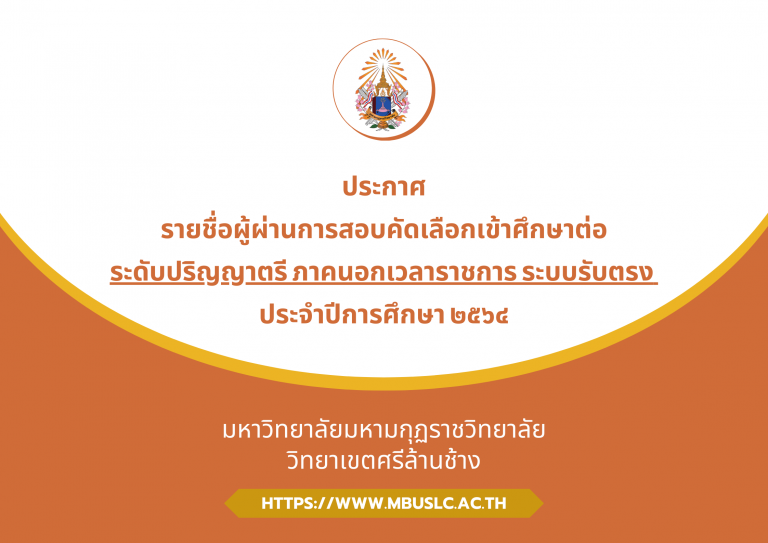 ข่าวประชาสัมพันธ์ ประกาศ รายชื่อผู้ผ่านการสอบคัดเลือกเข้าศึกษาต่อ ระดับปริญญาตรี ระบบรับตรง ภาคนอกเวลาราชการ ปีการศึกษา ๒๕๖๔25 พฤษภาคม 202125 พฤษภาคม 2021