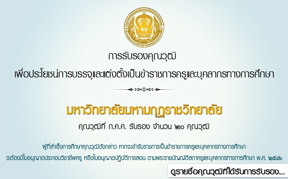 ข่าวประชาสัมพันธ์ ประกาศรายชื่อผู้ผ่านการสอบคัดเลือกเข้าศึกษาต่อในมหาวิทยาลัยมหามกุฏราชวิทยาลัย ระดับปริญญาตรี ภาคปกติ ระบบรับตรง (โควตา) รอบแรก13 มีนาคม 201413 มีนาคม 2014
