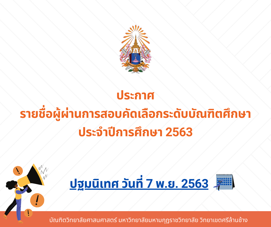 ประกาศ รายชื่อผู้ผ่านการสอบคัดเลือกระดับบัณฑิตศึกษา ประจำปีการศึกษา 2563