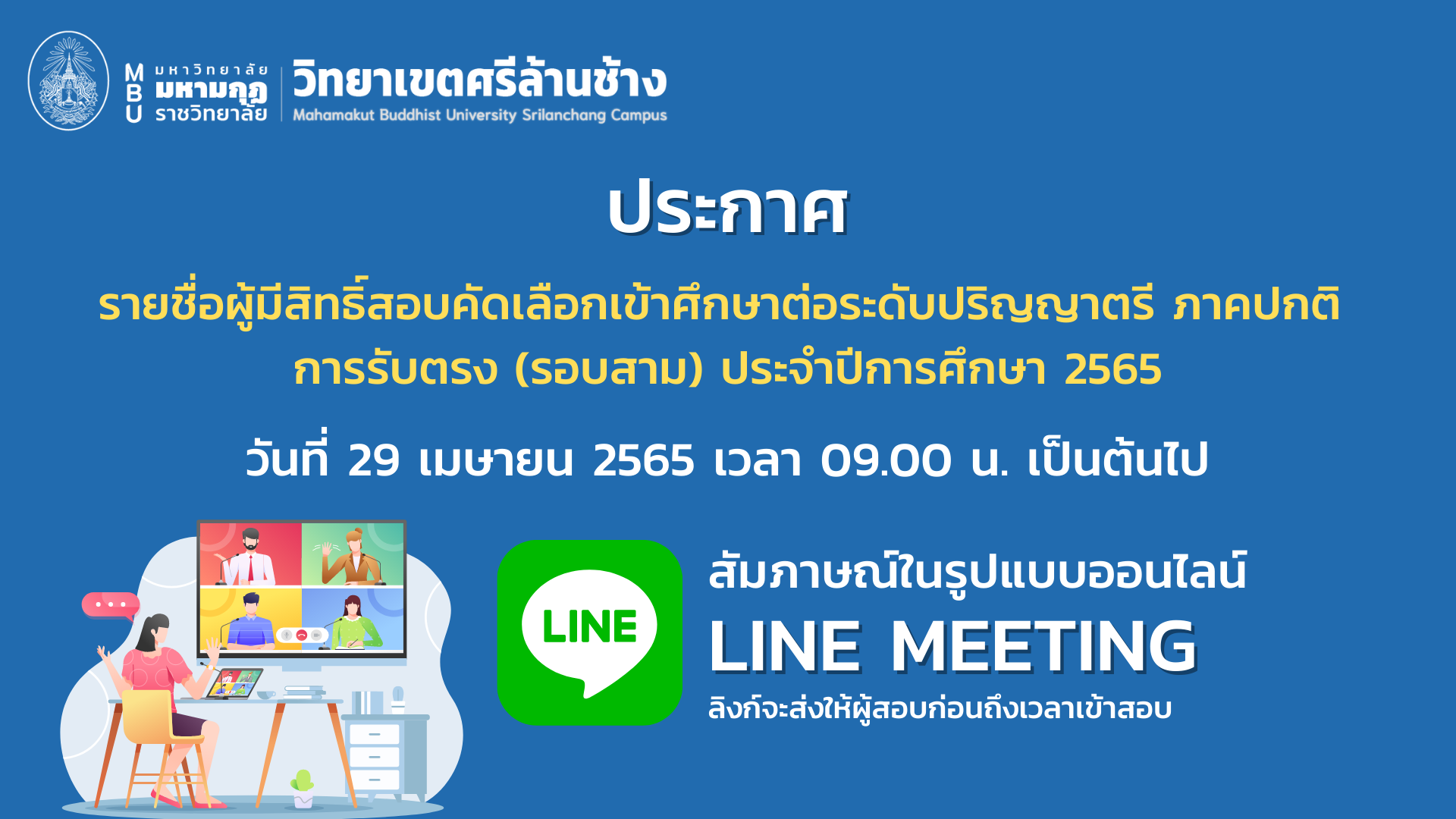 รายชื่อผู้มีสิทธิ์สอบคัดเลือกเข้าศึกษาต่อระดับปริญญาตรี ภาคปกติ การรับตรง (รอบสาม) ประจำปีการศึกษา ๒๕๖๕