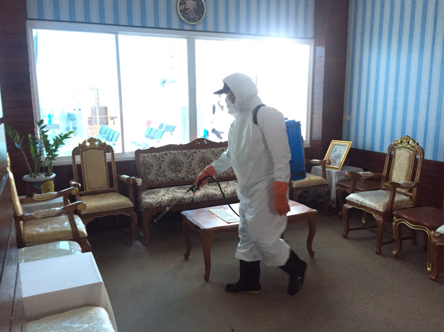 พระมหาวิเชียร ธมฺมวชิโร,ดร. รองอธิการบดีมอบหมายให้พระมหาจิณกมล อภิรตโน ผู้อำนวยการสำนักงานวิทยาเขต ประสานงานป้องกันและควบคุมโรคติดต่อ กองสาธารณสุขและสิ่งแวดล้อม เทศบาลเมืองเลย ให้ความอนุเคราะห์ดำเนินการฉีดพ่นน้ำยาฆ่าเชื้อสถานที่ต่าง ๆ ในเขตตำบลกุดป่อง เทศบาลเมืองเลย เพื่อความปลอดภัยของบุคลากร นักศึกษาทุกท่าน ตามมาตรการการป้องกันการแพร่ระบาดของโรคไวรัสโคโรนา (โควิด-19) (COVID-19) ณ บริเวณมหาวิทยาลัยมหามกุฏราชวิทยาลัย วิทยาเขตศรีล้านช้าง