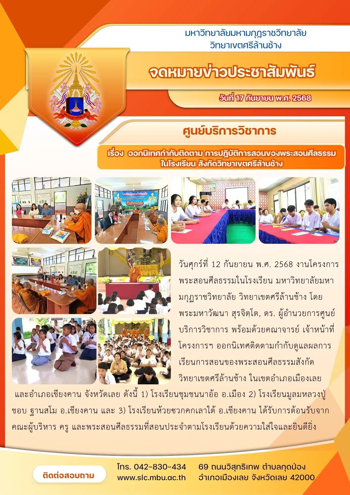 ออกนิเทศกำกับติดตามการปฏิบัติการสอนของพระสอนศีลธรรมในโรงเรียน