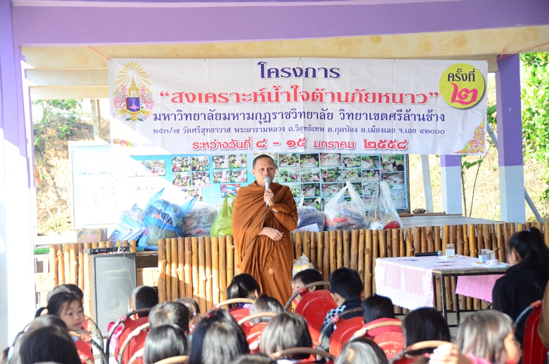 เมื่อวันที่ ๑๓ – ๑๕ มกราคม ๒๕๕๘ ที่ผ่านมา พระมหาวิเชียร ธมฺมวชิโร ผู้อำนวยการวิทยาลัยศาสนศาสตร์ คณาจารย์ เจ้าหน้าที่ ตลอดถึงนักศึกษามหาวิทยาลัยมหามกุฏราชวิทยาลัย วิทยาเขตศรีล้านช้าง จำนวนหนึ่ง ได้ออกแจกผ้าห่มเครื่องกันหนาว และอุปกรณ์กีฬา แก่โรงเรียนในพื้นที่ห่างไกล ในเขตตำบลชมเจริญ อำเภอปากชม จังหวัดเลย และในเขตพื้นที่ อำเภอสังคม จังหวัดหนองคาย